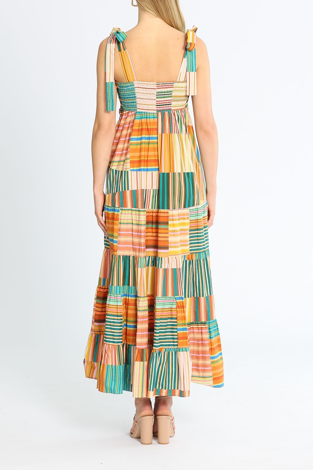 You're sure to be happy this summer once you add the Sloane Tiered Midi in Multi Stripe by Alemais into your wardrobe. Lightweight and crafted from 100% Organic Cotton, this midi offers tie shoulder straps and a tiered skirt in stripe print. Rent this stunning piece to fit perfectly in your wardrobe!