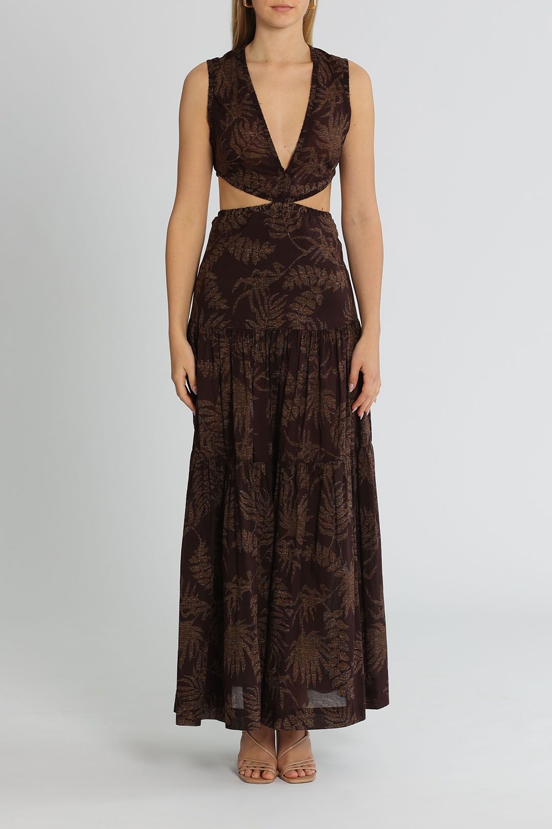 Take risks in the stylish Desert Palm Maxi Dress by Bec and Bridge, perfect for your upcoming summer events. This maxi dress is styled with a V-neckline, waist cutout detailing that extends to an open back, and is finished with a flowing tiered skirt. Rent this today and wear it for your next sunset drinks.