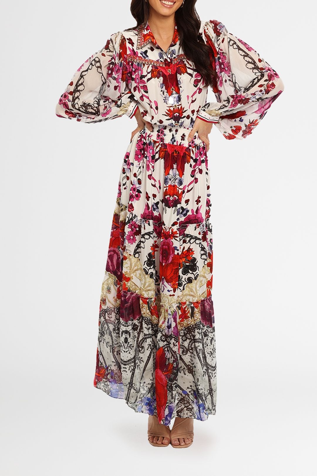Event dressing has never been easier than the Reign Of Roses Maxi Dress by Camilla. It’s time to get your hands on this vibrant dress with hand-embellished crystals, a structured collar, and a flattering full skirt. Perfect to hire for an upcoming wedding event!