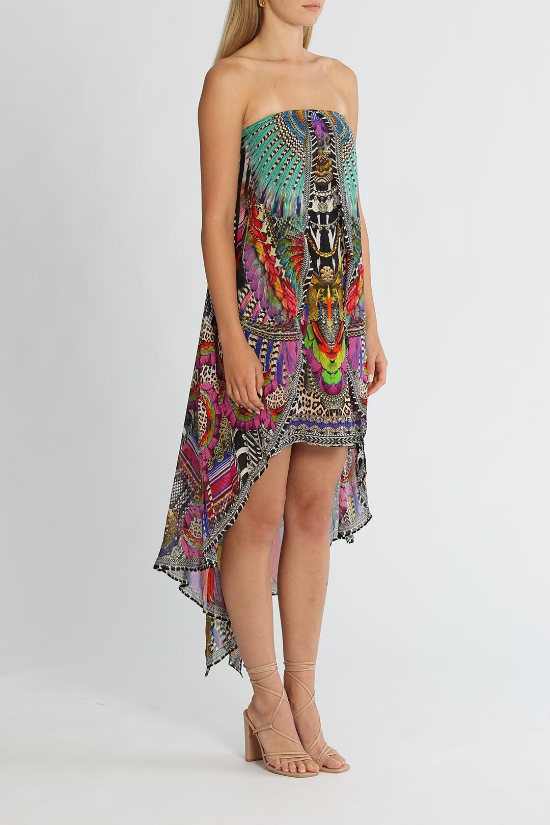 Delivering on drama, this exquisitely styled dress by Camilla is your ultimate resort dressing! It flaunts a halter neckline and gently drapes from a high-low mini hem. Radiate summer vibes by hiring this dress for your next beach day.