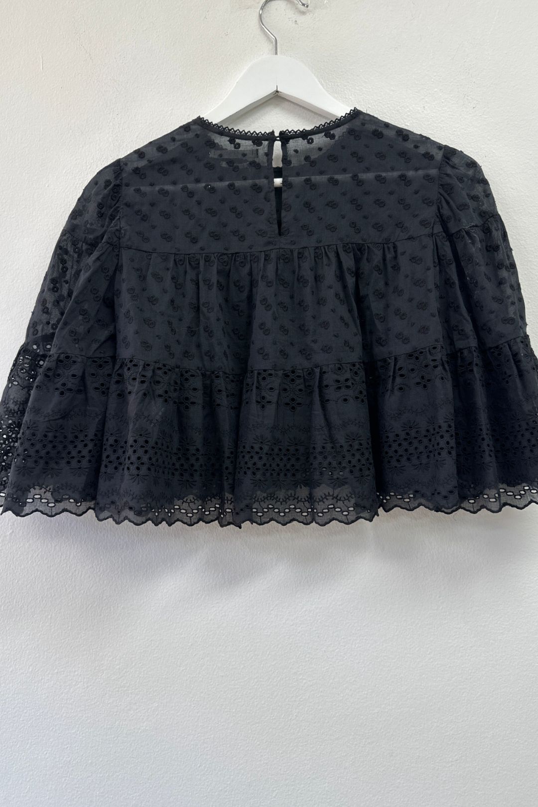 Semi-sheer Broderie Anglaise Cropped Top In Black