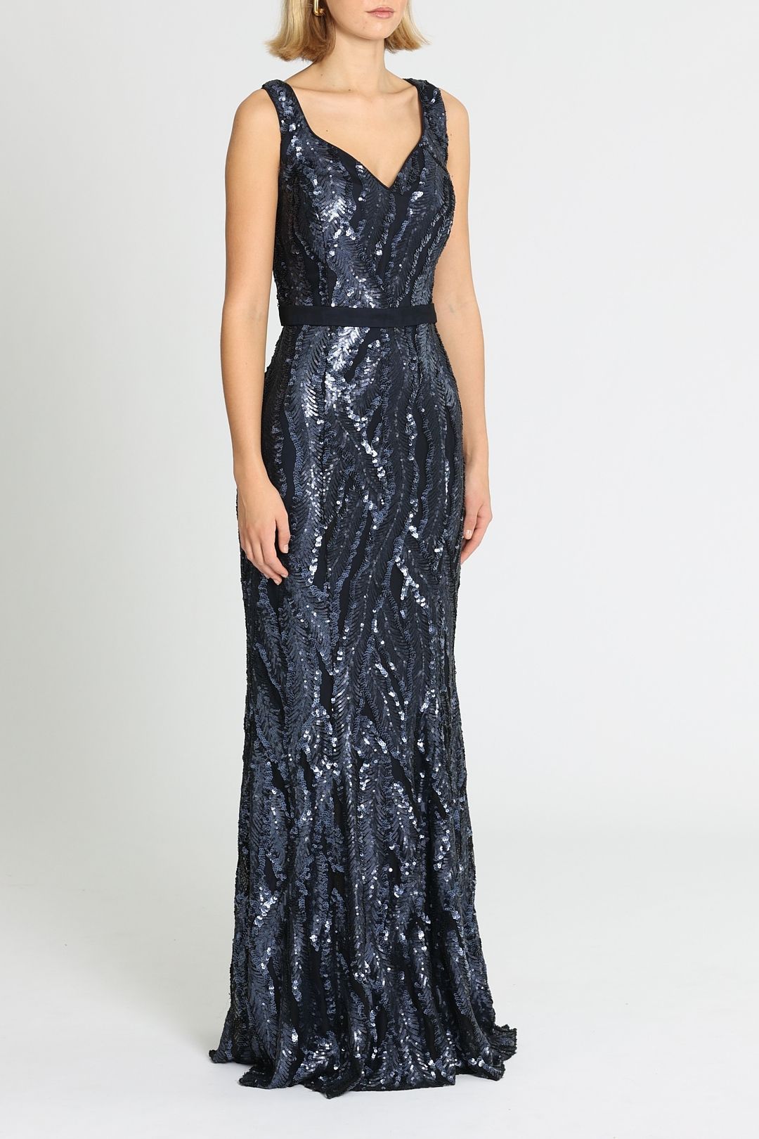 No matter the room, make an impression with the Aria Gown. Hallmarked by exceptional detailing of feather-like sequins, a super flattering sweetheart neckline and v-cut back, this gown is finished off with a floor length silhouette with small dragging train for an elegant classic touch. Make this yours to rent as you go from dusk to dawn for a EOFY ball or formal ceremony.